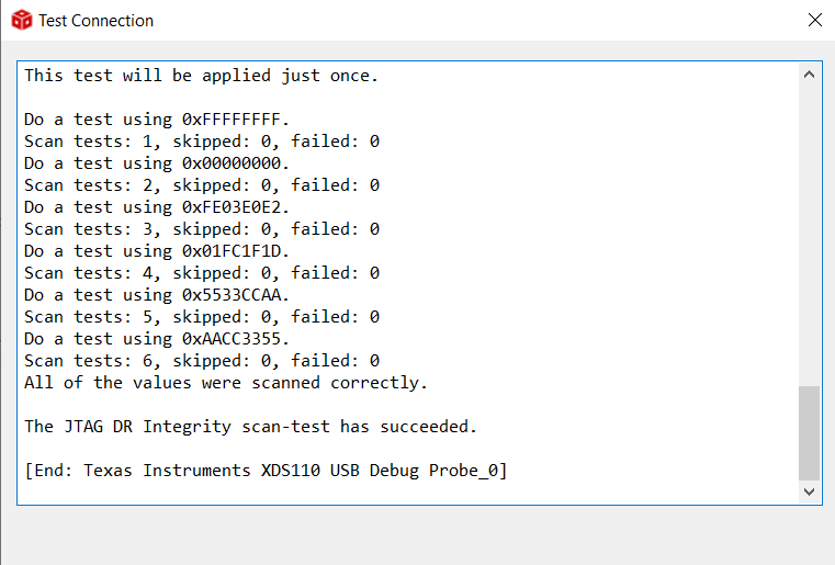 Now you can hit the Test Connection button. You should see a few tests run and complete successfully, including a reset of the processor and integrity scans.