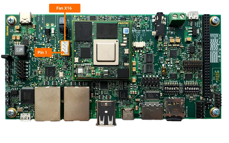 Connect fan to the 4-pin Hirose connector at X16.