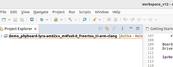 Open Code Composer Studio (CCS) and navigate to the PHYTEC Example Firmware directory, as outlined in the section Building an Application.