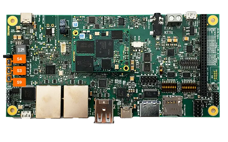 The phyCORE-AM62x development kit provides a selection of buttons to perform power related functions. To learn more information about the phyCORE-AM62x reset interfaces, please see section 5.3 in the Hardware Manual.