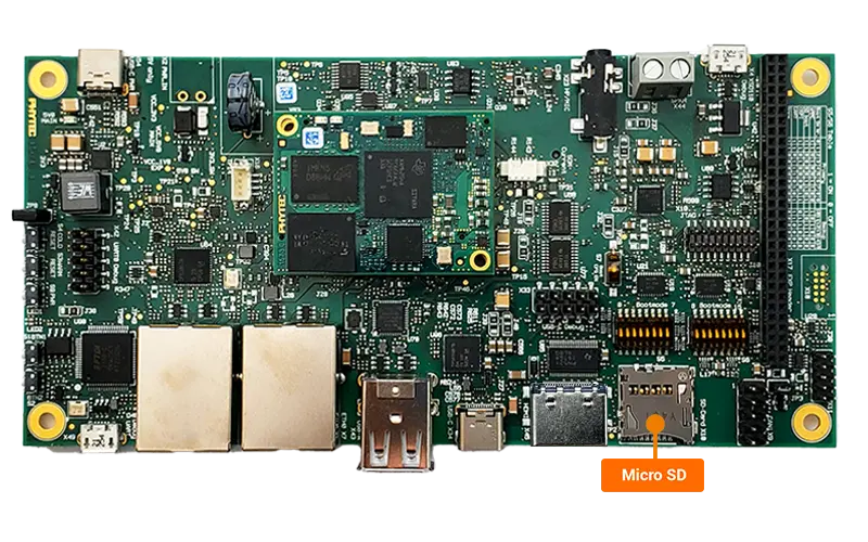 The SD card interface can be used as a boot device or plug-and-play external media. This guide will walk through reading and writing to the phyCORE-AM62x development kit’s mirco-SD card. For information on how to boot the development kit from SD card see the guide SD Card. More information on the SD card interface all together can be found in the section 6.2.2 in the Hardware Manual.