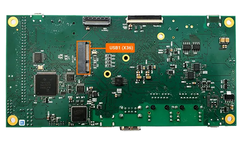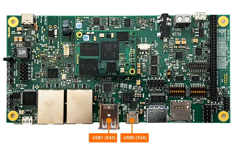 The USB0 interface is brought out as a type-C connector (X34). The USB1 interface uses a USB HUB to split the bus to 3x locations.