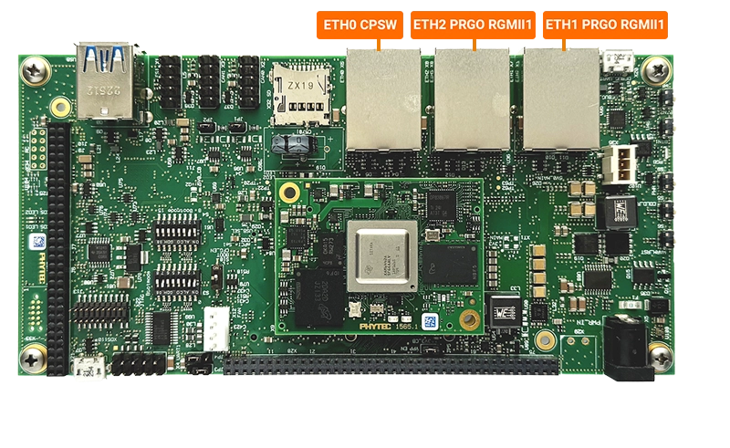 The phyBOARD-Electra AM64x has 3 external gigabit ethernet ports. All interfaces offer a standard Linux network port that can be programmed using the BSD socket interface. The whole network configuration is handled by the systemd-networkd daemon. The relevant configuration files can be found on the target in /lib/systemd/network/ as well as the BSP in meta-ampliphy/recipes-core/systemd/systemd-conf. To learn more information about the phyCORE-AM64x ethernet serial interface, please see the Ethernet section in the Hardware Manual.