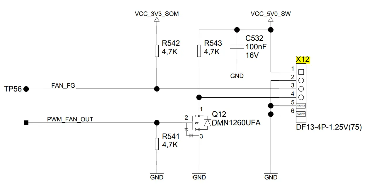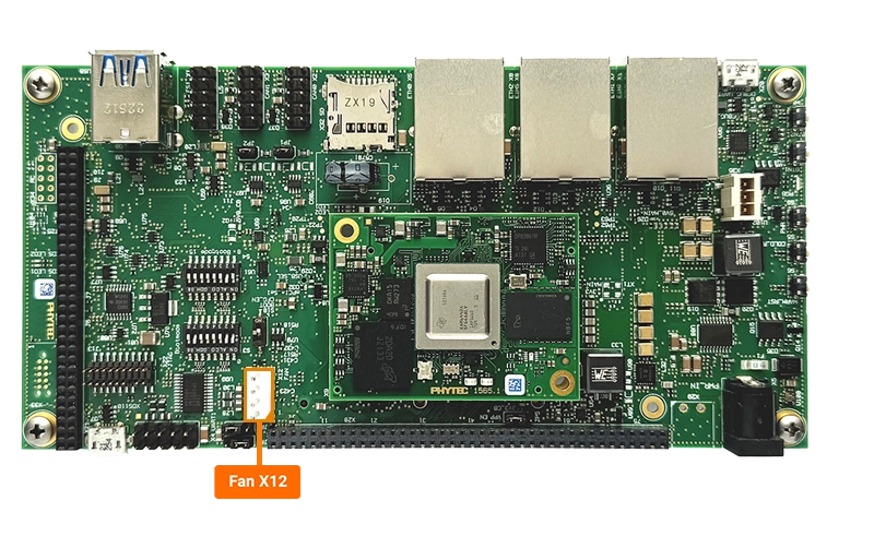 The phyBOARD-Electra AM64x includes a 4-pin connector at X12 for fan connectivity, designed for mounting the fan directly onto the processor heat sink for thermal management. The fan’s 5V power output can be controlled through a general-purpose control signal. When the control signal is set to a low state (0), the fan is powered on. Conversely, setting the control signal to a high state (1) turns off the 5V supply to the fan connector. This guide will demonstrate how to test your connections to the 4-pin connector at X12. For additional information on phyCORE-AM64x thermal management and fan operation, please refer to the Fan section in the Hardware Manual.