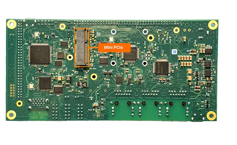 sh-phyboard-electra-am64xx-2:~# poweroffWith the power removed, insert the miniPCIe adapter into the development kit’s miniPCIe slot.