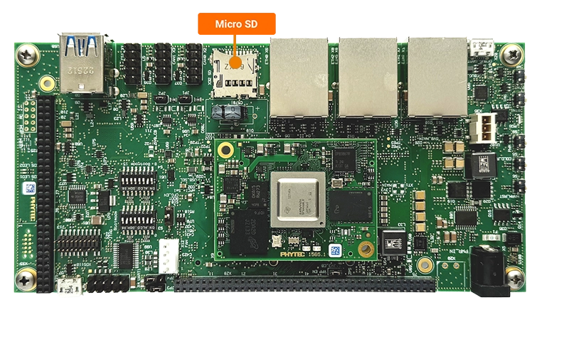 The SD card interface can be used as a boot device or plug-and-play external media. This guide will walk through reading and writing to the phyCORE-AM64x development kit’s mirco-SD card. For information on how to boot the development kit from SD card see the guide SD Card. More information on the SD card interface all together can be found in the section 6.2.2 in the Hardware Manual.
