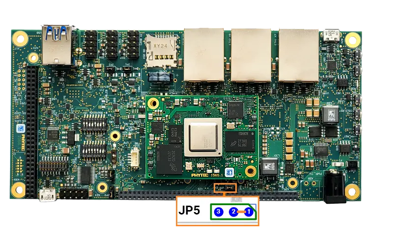 Now we must set JP5 to pins 1 and 2 on the development kit in order to flash the keys.