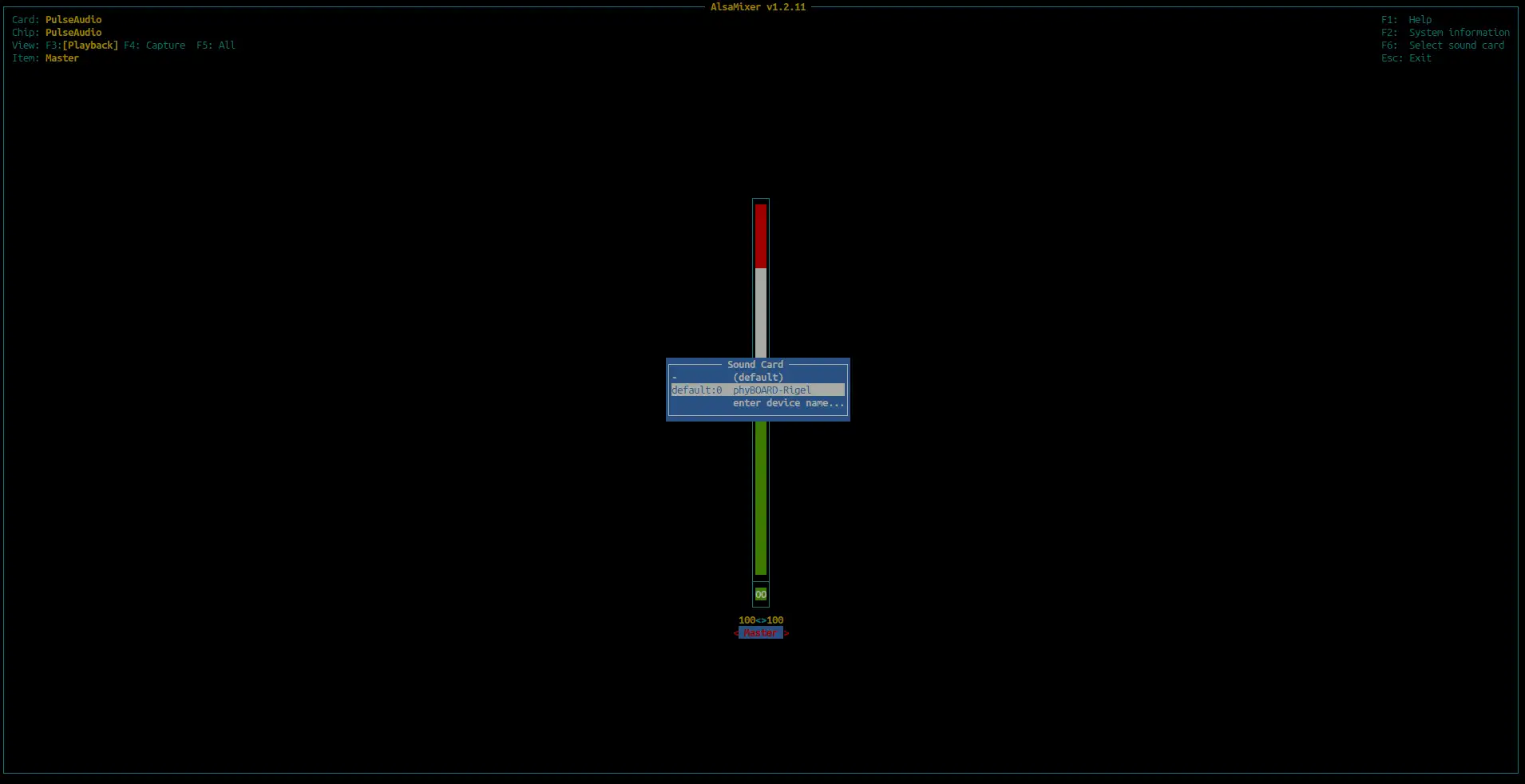 The command alsamixer allows the user to adjust, volume, soundcard devices and many other settings with an interactive GUI. This command is recommended for users who are note familiar with ALSA.