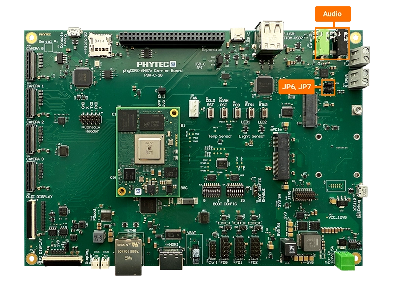 The phyCORE-AM67x SOM provides three Multichannel Audio Serial Ports (MCASPs). The MCASPs function as general-purpose audio serial ports optimized for the needs of multichannel audio applications. This guide will show how to play and record audio with the phyCORE-AM67x development kit. To learn more information about the phyCORE-AM67x MCASPs (Audio), please see section 7.7 in the Hardware Manual.