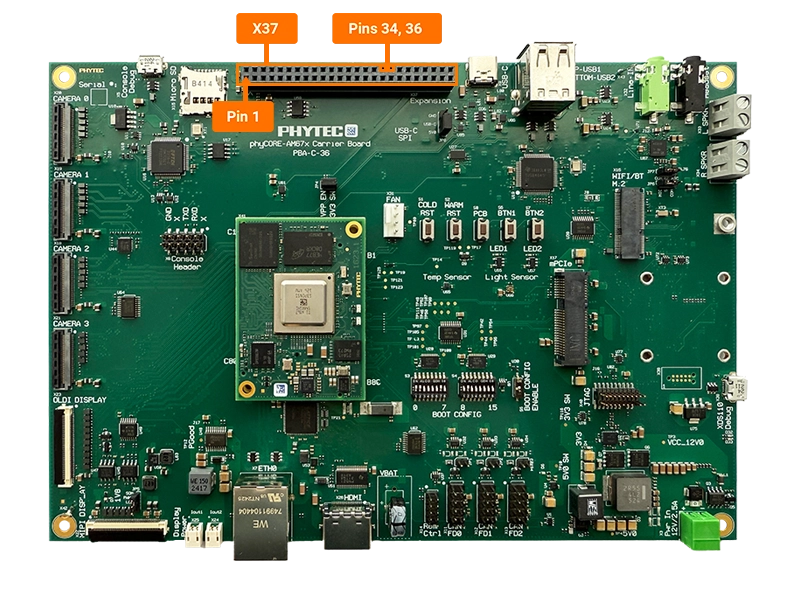 sh-phyboard-rigel-am67xx-1:~# poweroffConnect pin 34 and pin 36 of the X37 expansion connector using a M-M jumper wire. These pins correspond to SPI0’s MISO and MOSI signals.
