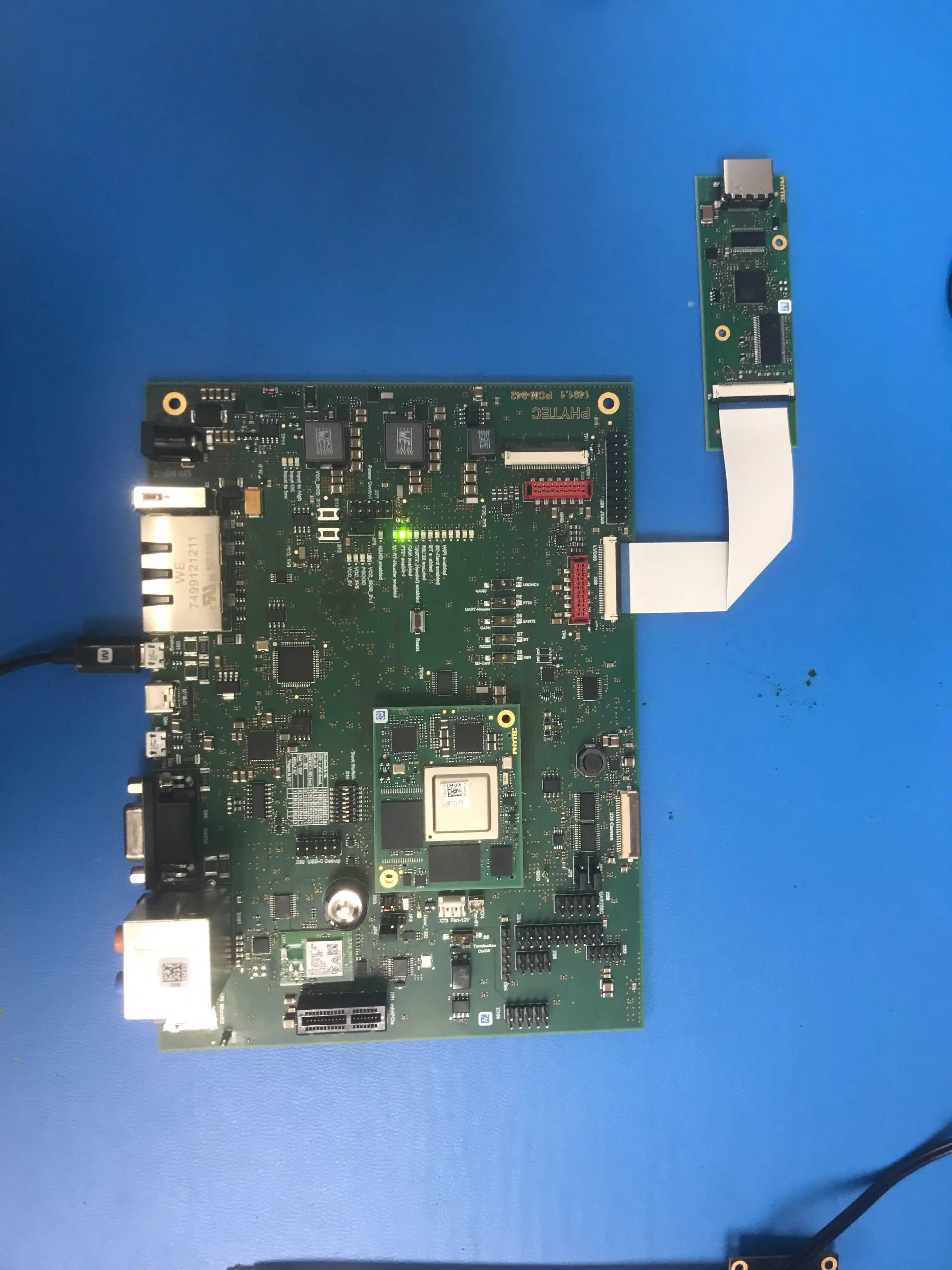 With the phyCORE-i.MX8X development kit powered off, connect the PEB-LVDS-01 adapter to the LVDS0 interface.